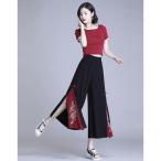 パンツ 龍刺繍 ドラゴン刺繍 ワイドパンツ 袴パンツ 龍 竜 ドラゴン 韓国ファッション 和柄 和装 和服 ガウチョ 竜刺繍 雅 大和撫子 着物 昭和レトロ 花魁