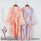 寝巻き ガーゼ 浴衣 ガウン お風呂上がり バスローブ レディース ルームウェア 2重ガーゼ 綿糸 花柄 和服式 夏素材 旅館 温泉 入院 介護