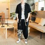 7分袖 羽織 メンズ 着物 甚平風 浴衣 カーディガン 切替 薄手 夏 サマー 七分袖 和服風 おしゃれ 敬老の日 敬老の日 ギフト