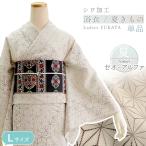 洗える 夏きもの 浴衣 単品 東レ セオ・アルファ ベージュ ブラウン 麻の葉 Lサイズ 広衿 お仕立て上がり レディース シワ加工 カジュアル 和服