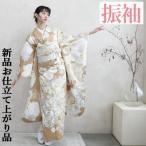 振袖 仕立て上がり Mサイズ 合繊 本振袖 振り袖 成人式 袷仕立て 金彩友禅 白 金 古典 洗える着物 ポリエステル 新品 未使用 卒業式 袴 和服 たとう紙付き 単品
