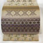 袋帯 美品 逸品 芭蕉糸真綿バンブー和紙織 縞 幾何学 金通し 薄茶色 六通 正絹 中古