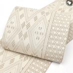 半幅帯 未使用 米沢 米澤 宝来織 紙こぎん 全通 絹 和紙 薄ベージュ コーヒー色 菱 半巾帯 カジュアル 新品 仕立て上がり みやがわ sb55055