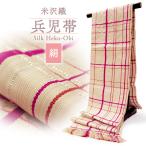 兵児帯 絹 米沢織 ベージュ ピンク 銀 チェック お仕立て上がり チャイチャイ帯 大人 へこ帯 レディース おしゃれ カジュアル 和服 和装 小紋 紬
