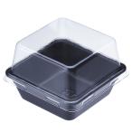 【和菓子トレー】PS 和風80角ケース本体 黒 本体・蓋セット 2,500個