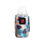 ボトルウォーマー USB 保温 哺乳瓶 哺乳びん ドリンクウォーマー 迷彩ブルー 持ち運び 加熱 ヒーター ケース ((S