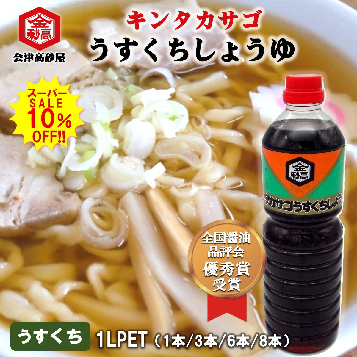 【楽天スーパーSALE10%OFF】醤油 淡口しょうゆ 会津高砂屋 キンタカサゴ うすくちしょうゆ 1L PET 1本/3本/6本/8本 自家用 簡易包装 贈答用 美味しい しょうゆ 会津 喜多方ラーメン 刺身 割烹 淡麗