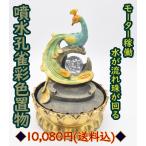 孔雀 噴水置物 右向き振り返り フルカラー彩色 モーター可動 樹脂製 風水インテリア 26cm