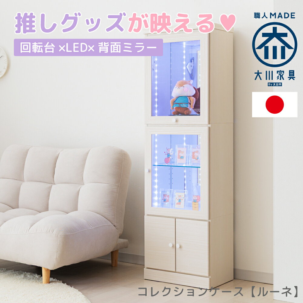 [マラソン中5%OFFクーポン] ルーネ | 推し活収納 国産 コレクションケース 収納 棚 収納棚 ケース ボックス 【 回転台 LED照明 背面ミラー ディスプレイラック フィギュア グッズ収納 アクスタ ディスプレイラック 収納家具 カード ディスプレイ 缶バッチ 推し活家具