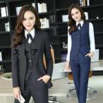 スリーピーススーツ レディース ビジネススーツ パンツスーツ3点セット ストライプ柄 ベスト付き ミセススーツ フォーマル 通勤 オフィス OL制服