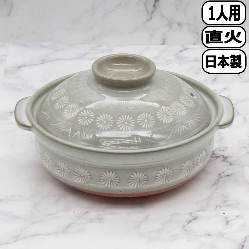 【30日5千円5%OFFクーポン】万古焼 銀峯 花三島 6号土鍋 1人用 日本製 どなべ 直火 オーブン レンジOK 銀峯窯