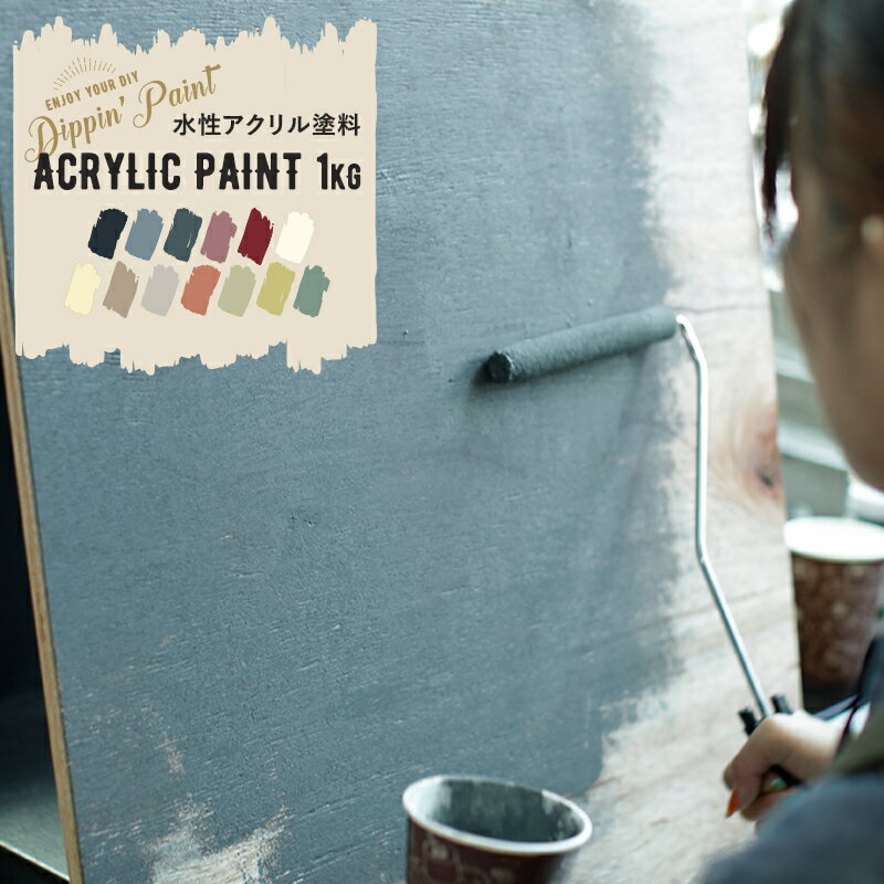 [11%OFF!12/1限定クーポン]水性アクリル塗料 マットカラー ACRYLIC PAINT 1kg 塗料 ペンキ 絵具 ディッピンペイント diy リメイク 屋外 艶消し 艶無し マットカラー Dippin' Paint ネイビー ホワイト ベージュ ワイン ローズ アイボリー 友安フレンチネイビー