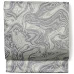 名古屋帯 揺らぎ縞 墨流し ライトグレー シルバー マーブル ラメ ポリエステル 洗える お太鼓 九寸 全通柄