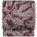 名古屋帯 揺らぎ縞 墨流し 赤 グレー ラメ マーブル ポリエステル 洗える お太鼓 九寸 全通柄