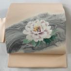 名古屋帯 美品 優品 落款あり 牡丹 墨流し 薄ピンク 正絹 中古