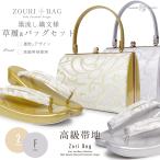 【レンタル】高級帯地 墨流し 草履バックセット 選べる2色 留袖 訪問着 振袖 フリーサイズ フォーマル ゴールド シルバー 金 銀 着物 和装