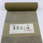 反物 名品 小紋 京墨流し染 証紙 伝統工芸友禅 落款 墨流し柄 江戸小紋柄 茶緑色 正絹 中古