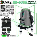 SOZOKI グリーンレーザー墨出し器 5ライン 4方向大矩ライン照射 超高輝度 2電源方式 Type-C充電 受光器対応 選択可能な充電池×2個/リモコン「SH-400Gシリーズ」
