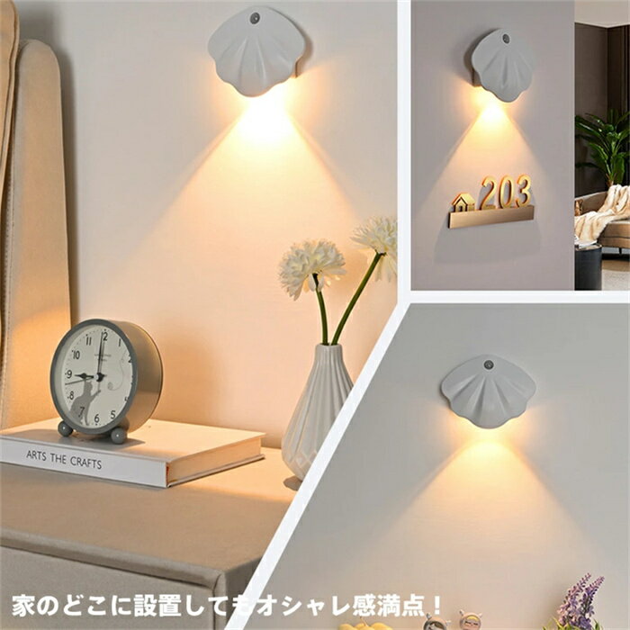 【P2倍!4280円→実質4194円 11/27 01:59まで】【2/3点セット】シェルLEDセンサーライト 貝殻足元灯 ledライト usb充電 夜間自動点灯 懐中電灯兼用 廊下 寝室 玄関 階段 キッチンライト 洗面所 ブラケットライト 壁掛け照明 壁掛けランプ 壁付照明 常夜灯