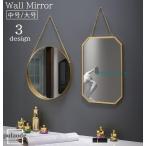 ウォールミラー 壁掛けミラー 鏡 かがみ チェーン 丸型 四角 六角形 吊り下げ インテリア アンティーク調 壁面 身だしなみチェック 玄関 寝室 ト