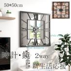 【50cm】掛け時計 壁掛け時計 おしゃれ クロック 鏡 2way デザイン 四角型 金属製 新生活応援 北欧 新築祝い ギフト 電池 静音 時計