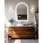 壁掛け鏡 女優ミラー 90*60cm 音楽再生機能付き アーチ型 LEDライト付き 化粧鏡 おしゃれ 美容室 洗面台 トイレ ウォールミラー 光る鏡 曇らない 組立完成品