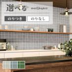 壁紙 タイル柄 グレー系 ブルー系 グリーン系 賃貸 補修 キッチン 水回り おしゃれ 壁紙貼り替え リフォーム のりなし サンゲツ ファイン