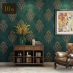 壁紙 ダマスク柄 グリーン 緑 53cm×1000cm シールタイプ DIY 模様替え クロス 補修 賃貸壁紙 背景 プレゼント シンプル ベッドルーム