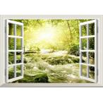 絵画風 壁紙ポスター (はがせるシール式) 森林 森林浴 陽射し 緑の森の木々 癒し【扉なし窓仕様】 キャラクロ SNR-030NA1(A1版 830mm×585mm)<日本製>
