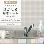 壁紙シール はがせる 壁紙 タイル パステル モザイク 65cm×1m リメイクシート ハッテミー 賃貸 防水 キッチン 洗面 水回り