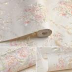 壁紙 のり付き 花柄 クロス おしゃれ 壁 アンティーク クラシック フラワー 薔薇 バラ 水色 カントリー風 花束 ネイビー オレンジ パステルカラー フェミニン