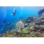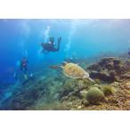 絵画風 壁紙ポスター (はがせるシール式) ダイビング ウミガメ ダイバー サンゴ 海 キャラクロ DVG-014A1(A1版 830mm×585mm)<日本製>