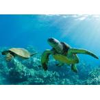絵画風 壁紙ポスター (はがせるシール式) ウミガメ アオウミガメ ハワイ カメ 亀 海 キャラクロ TTL-002A2(A2版 594mm×420mm)<日本製>