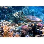 絵画風 壁紙ポスター (はがせるシール式) ウミガメ サンゴ礁 ダイビング 亀 海 キャラクロ TTL-003A2(A2版 594mm×420mm)<日本製>