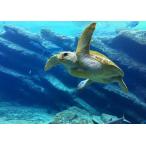 絵画風 壁紙ポスター (はがせるシール式) 沖縄 トカラ諸島のアオウミガメとエメラルドブルー キャラクロ M-OKN-012W2(ワイド版 603mm×376mm)<日本製>