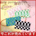 夏用マスク 蒸れない チェック柄 カラーマスク 50枚 使い捨て 不織布マスク 快適 おしゃれ 3層 メイク落とさない 春夏 女性用