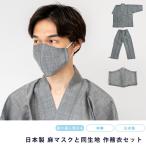 作務衣 マスク セット 男物作務衣 布マスク 日本製 サムエ 先染め 寝巻 おしゃれ メンズ 男物 夏用 綿麻 男性 通年 パジャマ 和服 部屋着 ズボン 父の日ギフト