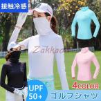 ゴルフシャツ レディース UVカット 長袖 インナーシャツ ストレッチ ひんやり マスク付き フェースカバー 夏 日焼け対策 ゴルフウェア 吸汗 速乾