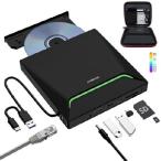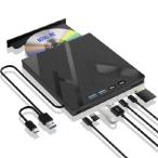 【並行輸入品】 外付けCD DVDドライブ、クールなDVDバーナーUSB 3.0、イーサネットアダプター付き、USB3つとTF/SDカードポート2つ、CD DVDプレーヤーリーダーラ