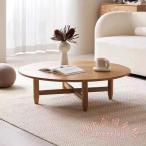 コーヒーテーブルラウンド無垢材和風畳 株式会社錦 和風リビングルームバルコニー小さな円卓テーブル(Size:80x80x30cm)