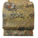 美品 丸帯 逸品 落款あり 琳派大全集 草花 金糸 箔 金色 お太鼓柄 正絹 中古
