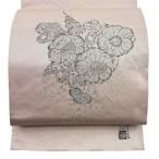美品 袋帯 名品 大脇一心 落款あり 関西仕立て 草花 箔 薄ピンク お太鼓柄 正絹 中古