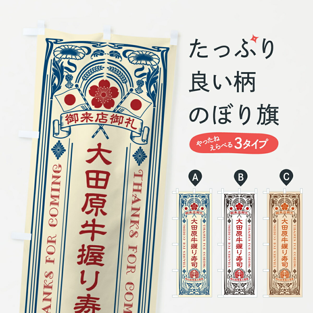 【ネコポス送料360】 のぼり旗 大田原牛握り寿司・肉寿司・レトロ風のぼり GC82 ブランド肉 グッズプロ 【名入れできます+1017円】