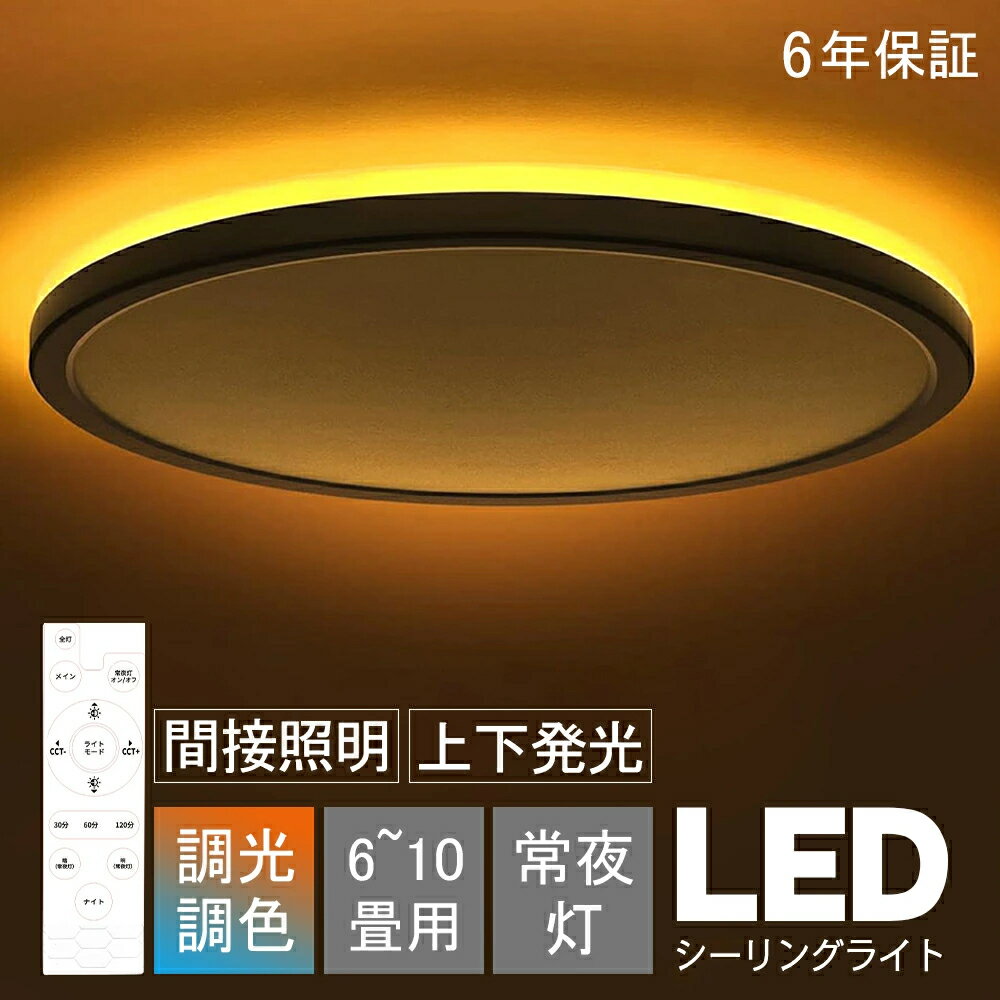 10%OFFクーポン&P5倍で3,825円!シーリングライト 調光調色 LED おしゃれ 北欧 リモコン付き 6畳 8畳 10畳 12畳 照明 インテリア アッパーライト 天井照明 LED一体型 明るい LED シンプル 居間用 カフェ リビング ライトリビング照明 工事不要 節電 おすすめ 省エネ