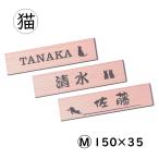 表札 猫 木目調 フェイクウッド 150×35 M ウッド調 長方形 本物の天然木のように見えるオシャレで可愛いネコの表札 屋外対応 シール式 日本製 メール便送料無料