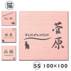 表札 猫 木目調 フェイクウッド 100×100 SS ウッド調 正方形 四角 本物の天然木のように見えるオシャレで可愛いネコの表札 屋外対応 シール式 メール便送料無料