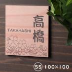 表札 桜が満開のデザイン 木目調 フェイクウッド 100×100 SS 正方形 四角ウッド調 本物の天然木のように見える さくらの表札 シール式 メール便送料無料