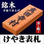 銘木表札 欅(ケヤキ)表札 7寸サイズ(210×88×30mm)天然木 手書き文字 浮き彫り けやき