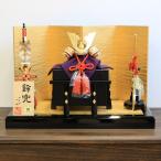 平安住一水作 8号 金小札朱赤糸縅 鳥毛光沢大鍬兜 二曲水色ライン屏風白木台飾り