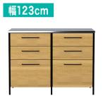 キッチンカウンター ステンレス天板 引き出し 幅123 奥行48 高さ92 背面化粧 アイアンスチール オーク 天然木 フルオープンレール 代引不可